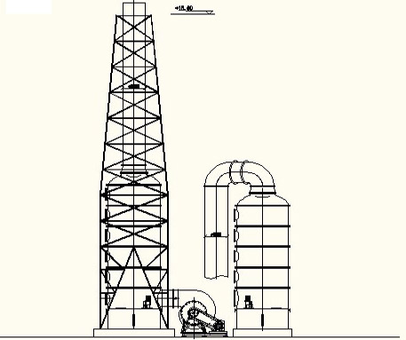 本设备由预处理塔和主处理塔二部分组成。每台塔具体由具体由贮液箱、塔体、进风段、喷淋层、填料层、除雾层、观检孔等组成。