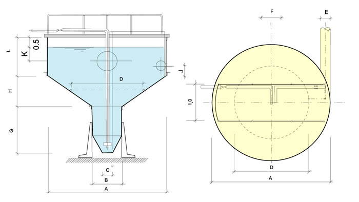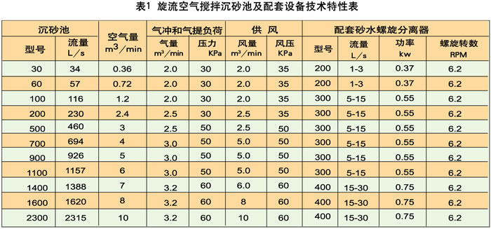 旋流沉砂池采用锥底圆形池,在池内设有桨叶分离机,在污水从池的切向入流,回旋270°后(按俯视顺时针向),从排放渠排出,利用进水的一定流速作为动力,沿圆形沉砂池的内壁作切线运动,形成旋流,同时通过桨叶搅拌,使液体旋流和轴向涡流,从而加速污水中砂粒沉降,让水中有机物与砂粒有效地分离,同时还利用越靠中心水流断面越小,水流速度加快,底部水流速度向心递增的原理,将池底的沉砂以螺旋状轨迹向中心砂斗移动。有机物在池中心部向上升起,并随出水水流一并排出,底部沉砂经提升装置提升,进入砂水分离器进行砂水分离后,污水则回流至格栅井内。